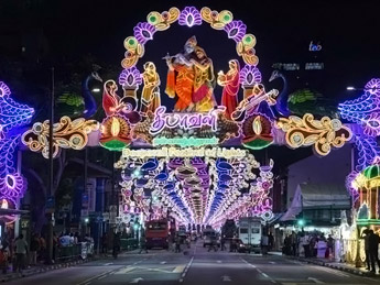 インド系住民の多いリトル・インディアでは、この日に合わせて家やお店、寺院などに、色とりどりのイルミネーションや煌びやかな装飾が施されます。特に、メイン通りとなるセラングーン・ロードとレースコース・ロードは、毎年趣向を凝らしたアーチ装飾で華やかに彩られます。