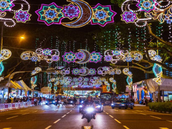 当日は新調した伝統衣装を着て、モスクや両親を訪問して自身の悪い行いの許しを求めた後、親族や友人とともに伝統的な料理を食しながらお祝いをするのが一般的。また、シンガポール最大のイスラム寺院「サルタン・モスク」のあるアラブストリート周辺や、ムスリム住民の多いゲイラン地区周辺などでは、華やかなライトアップやイベントも行われます。